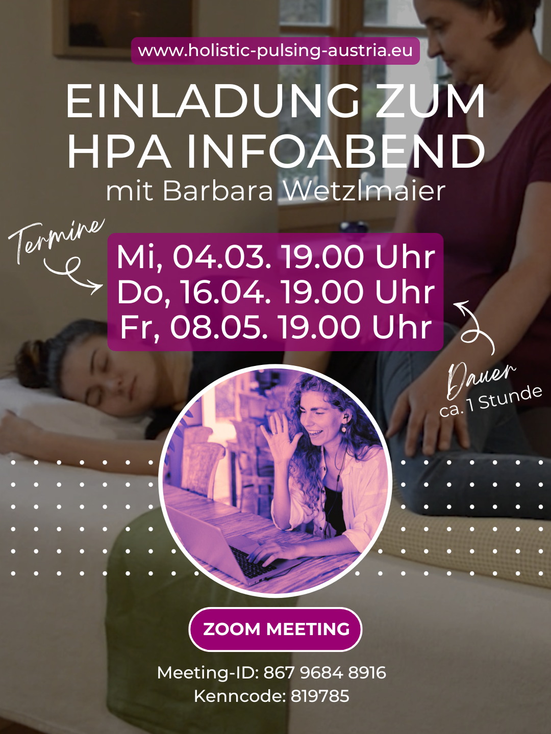Unsere nächsten Online-Infoabende mit Barbara Wetzlmair sind: